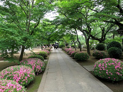 赤門は彦根藩主井伊家の江戸屋敷の新中雀門を明治18年移築。