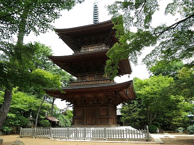 井伊家や旧佐倉藩主堀田家から移築したと伝える建物や、木造三重塔などの諸堂が並ぶ。招き猫発祥の地とする伝説も残る。