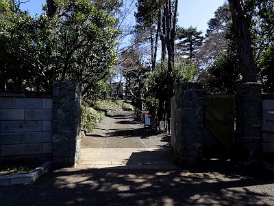 崖線の下にあり、この門からは岡本静嘉堂緑地が近い。