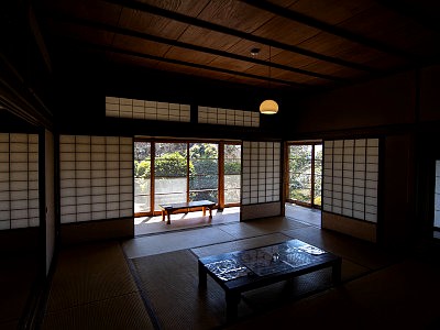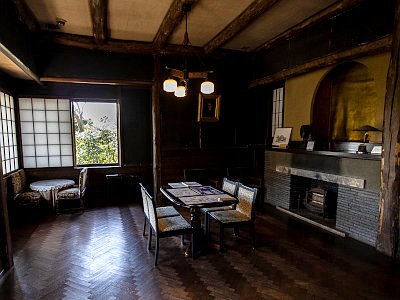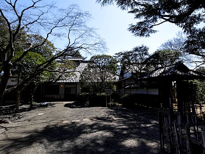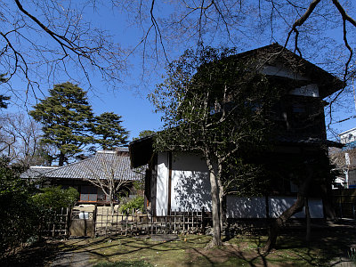 主屋は昭和12年竣工。洋風の寝室棟、和風の主棟(座敷)、山小屋風の書斎棟で構成され、茶室や内蔵も備える。世田谷区指定有形文化財。