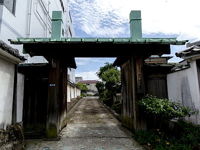 北参道の冠木門は、大正14年築の表門を移築したもの。