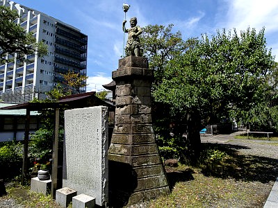 電燈講が昭和2年に建立した荒神像が境内中央に立つ。