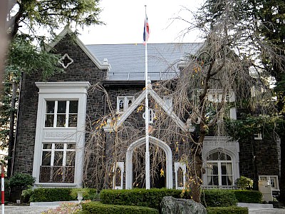 駐日タイ王国大使公邸は昭和9年竣工のチューダーゴシック建築。実業家の旧濱口邸。