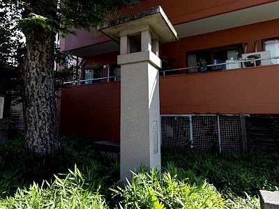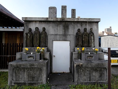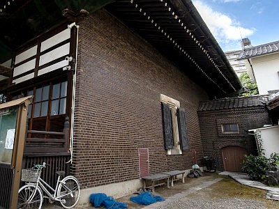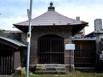 法禅寺は、山門の門柱及びその両脇の袖塀、本堂(大正11~12年頃建立)側面、板碑覆堂などがレンガ造り。また納骨堂は昭和9年竣工のRC造建築。当寺についての詳細は法禅寺の記事を参照。
