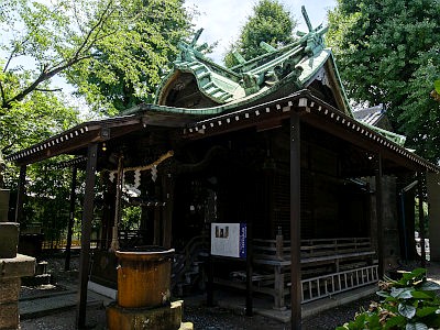 拝殿は明治5~6年頃の建立。珍しいムクリ破風が付されている。ムクリ破風は東京では他に中野区の松が丘北野神社や港区の旧台徳院霊廟惣門にも見られるが、全国的にはかなり珍しいと思われる。