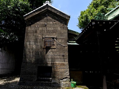 寄木神社の本殿そのものは土蔵造なのだが、その外周は石積みとなっており、石蔵風。明治5~6年頃の建立。