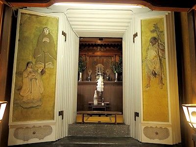 伊豆長八は、幕末から明治期にかけて活躍した鏝絵の名手。東京では他に、寄木神社近くの善福寺と、足立区の橋戸稲荷神社で見ることができる。