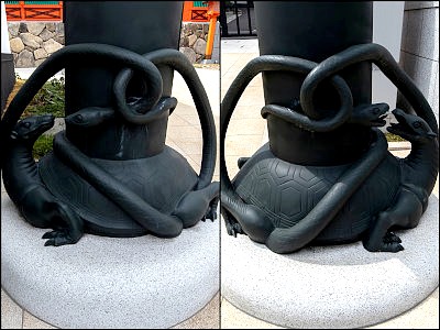 根巻には亀と蛇が絡み合う。