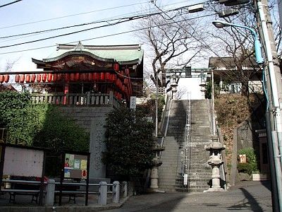 急な石段の脇にあるのは境内社の茶ノ木稲荷神社で、弘法大師空海の創建と伝え、市谷亀岡八幡宮の本社より歴史が古い。