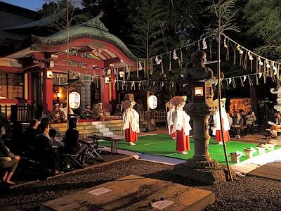 毎年10~11月頃、市谷亀岡八幡宮は「放生会 四魂の祭り」と称して、夕刻に雅楽、舞楽、神楽、剣術演武が奉納される。この行事に関する詳細は「市谷亀岡八幡宮 放生会」の記事を参照。