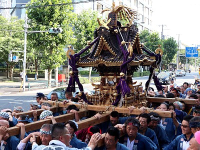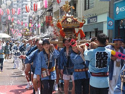 市谷亀岡八幡宮の例大祭は8月上旬に催される。神社で行われるのは式典のみで、あとはあけぼのばし通り商店街(住吉町会)や市谷薬王寺町会(隔年)など各自で祭礼が行われている。この行事に関する詳細は「市谷亀岡八幡宮 例大祭」の記事を参照。