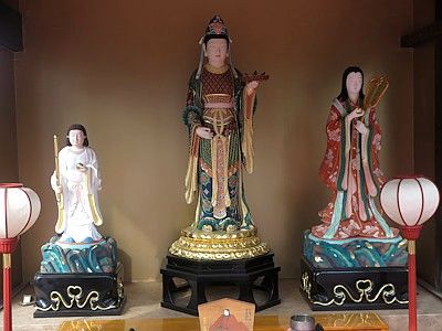 梅若堂内には、中央に伎芸天、右に妙亀大明神(梅若丸の母の妙亀尼)、左に山王権現(梅若丸)の像が立つ。