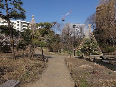 第二次世界大戦の戦災で壊滅的な被害を受け、戦後は地元民が野球場にする事を強硬に要望したが、東京都などの意向で庭園として復興された。ただし荒廃が酷かったため、戦前に国に指定されていた名勝指定は解除され、戦後しばらく立ってから改めて再指定された。