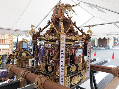石原一丁目町会の大神輿と中神輿もまた八棟造。
