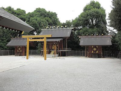拝殿の奥には、神明造の社殿が3棟並ぶ(垣内三殿)。中央にある本殿では主祭神である天照大御神を、右の摂社には月読命を、左の摂社には須佐之男命を祀る。
