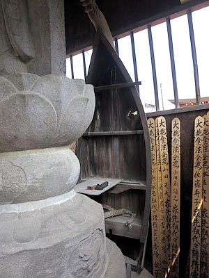 延命地蔵堂の前には大きなシャクシとスリコギが掛かるが、これらは今は亡き愛染堂のもの(愛染明王像は本堂内に移された)。