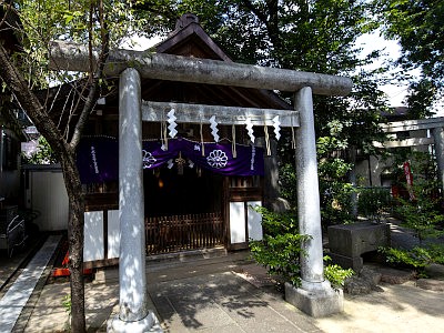 龍の彫刻を施された石鳥居は東京では馬橋稲荷神社のものと、区内の高円寺境内の稲荷社、品川区の品川神社の一ノ鳥居だけだというので東京三鳥居だと称している。なお、当社のものも高円寺のものも品川神社の鳥居を模したものだという。