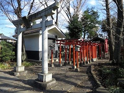 墓地を隔てた境内北端には、正一位稲荷と瘡守稲荷の小祠がある。