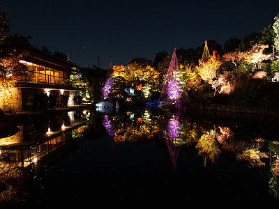 秋の紅葉の季節(11月下旬頃)には、庭園は夜間ライトアップされる。この行事に関する詳細は「目白庭園 紅葉ライトアップ」の記事を参照。