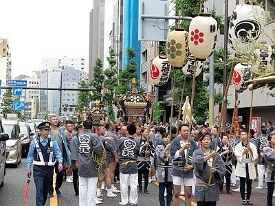 当社の例大祭は6月の上旬に執り行われる。かつては隔年で宮神輿の渡御があったが、近年は出御しないことが多い。町神輿の連合渡御は毎年行なわれる。この行事についての詳細は「第六天榊神社 例大祭」の記事を参照。