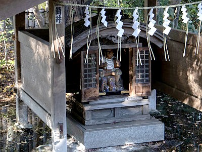 恵比寿堂は、池上の石に立つ小祠で、普段は扉は閉められているが、調布七福神巡りが行われる1月1~7日には開扉される。