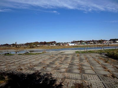 多摩川サイドから見た小吐口は、一番上の写真の一番手前の部分。