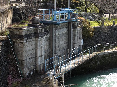 第三水門は大正13年完成。第一取水堰の下流500mにある [地図]。
