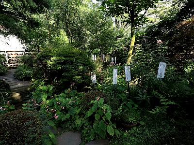 万葉植物園は昭和25~38年に境内に設置された。約160種の草木が植栽されている。
