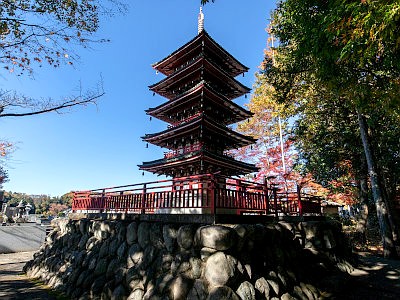 五重塔は、奈良県・興福寺の五重塔を1/7サイズで再現したもので昭和58年建立。大日如来を安置している。