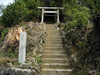 社殿前の急峻な傾斜地に石桟敷が設けられ、舞台を見る際の参観席となる。