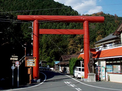 一ノ鳥居は御岳渓谷の近くに立つ。
