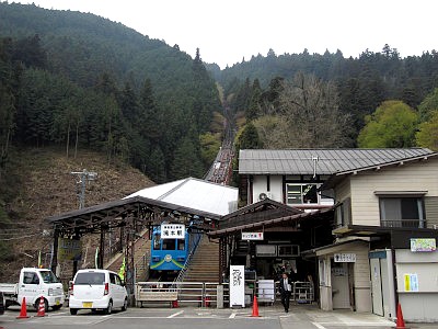麓には山下御師の居宅が点在するが、町並みというほどは残っていない。ケーブルカーの山下の駅まではバスか自家用車でアプローチできるが、一般車はそこから先は通行不可。またケーブルカーを利用せずに山上に至る登山道(参道)もある。