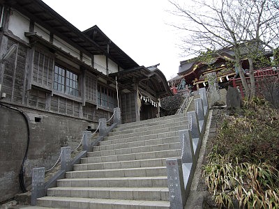 戦前の社格は東京府(東京都)の府社。山上に、江戸時代の社殿と共に、御師の集落が残る。