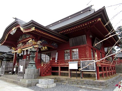 社殿は江戸後期に建立された旧東照社社殿。社殿前には狛猪がある。