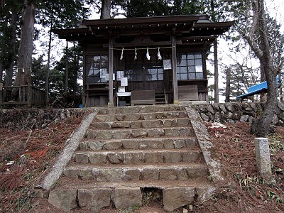 武蔵御嶽神社の奥宮(奥ノ院)男具那社(おぐなしゃ)は、本社から片道1時間の甲篭山(こうろうざん、1077m)山頂に鎮座する。
