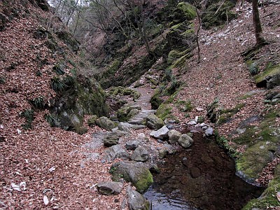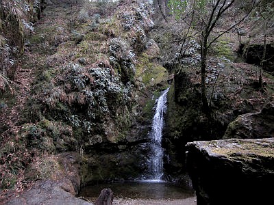 神社から七代の滝への道は高低差があり健脚向けだが、神社から綾広の滝へ(七代の滝やロックガーデン経由でなく)直接通じる道は比較的平坦で徒歩40分。