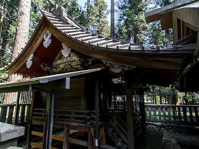 左から稲荷神社、八雲神社、白山神社、厳島神社を祀る合殿。
