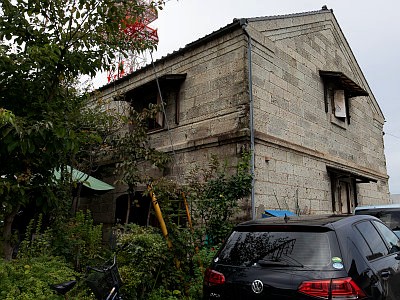 旧織物加工工場は昭和11年築。国登録有形文化財。現在は工房などに使用。