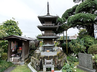 境内には三重小塔や、池辺に建てられた土蔵造の妙音堂もある。