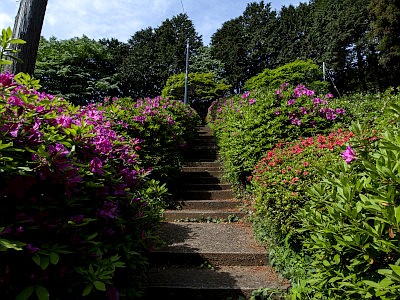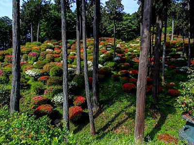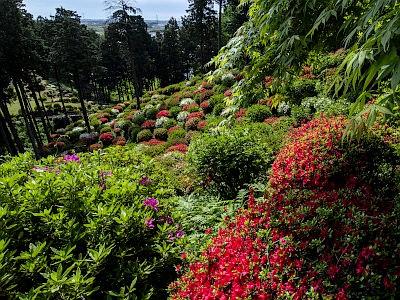 広大な庭園にはツツジが多く植えられており、4月中~下旬頃に見頃となる。