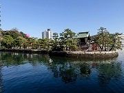 金沢八景駅近くにある神社。道路向かいには摂社琵琶島神社の境内が海に伸びる。